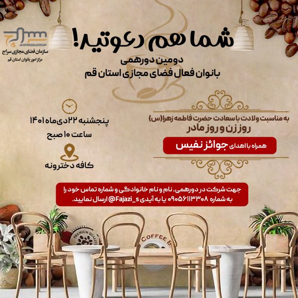 دومین دورهمی بانوان فعال فضای مجازی استان قممدیریت سایتآبان ۴, ۱۴۰۱دومین دورهمی بانوان فعال فضای مجازی استان قم به مناسبت ولادت باسعادت حضرت فاطمه زهرا(س)، روز زن و روز مادر ... ادامه مطلب